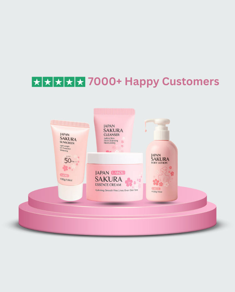 Discover the visible difference that Japan Sakura Skincare brings to your daily routine. Infused with the delicate essence of cherry blossoms and enriched with natural active ingredients, this complete skincare set targets multiple skin concerns at once.